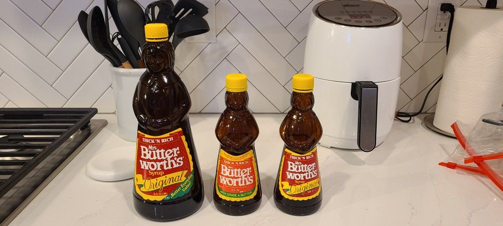 Set Of 3 Vintage Mrs. Butter-Worth's Glass Syrup Jars Two 12 Oz And One 36 Oz