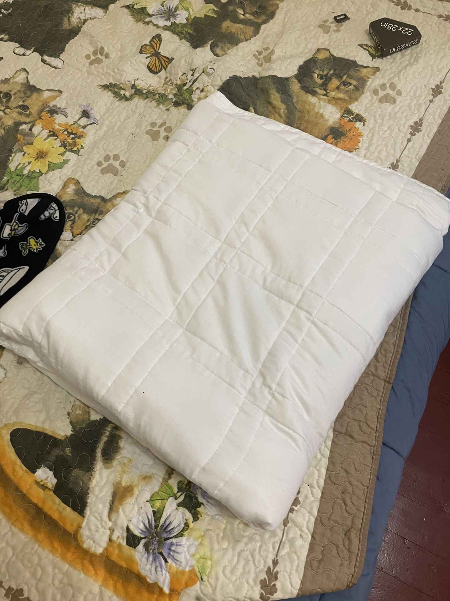 Baloo weighted blanket in full/queen size, 15 lbs. 60"*80". Costs $209 new. From the product webpage: "Designed for deep rest and relaxation, Baloo is an eco-friendly, luxury weighted blanket made with lead-free glass microbeads and materials certified to be free of all toxic and harmful chemicals. We are the only quilted weighted blanket with 100% cotton throughout, zero polyester linings or filling." Product webpage available here: https://offerup.com/redirect/?o=aHR0cHM6Ly9iYWxvb2xpdmluZy5jb20vcHJvZHVjdHMvd2VpZ2h0ZWQtYmxhbmtldD92YXJpYW50PTQyOTM0NTg3ODE4MjAz For the majority of the time we used the blanket, we used this gray, cotton duvet cover which has a lot of ties inside, keeping the weighted blanket from moving around (and prevented further staining). Cover is included. Both have been freshly laundered. Pickup in Buckman.