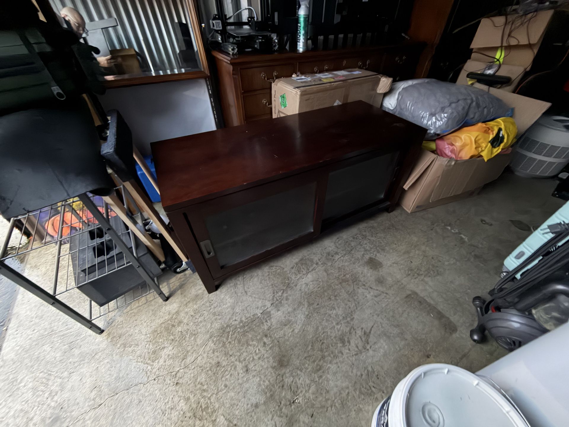 TV stand / media cabinet with sliding glass doors 52” wide 21” deep 24” tall All shelves are present. Can help load.
