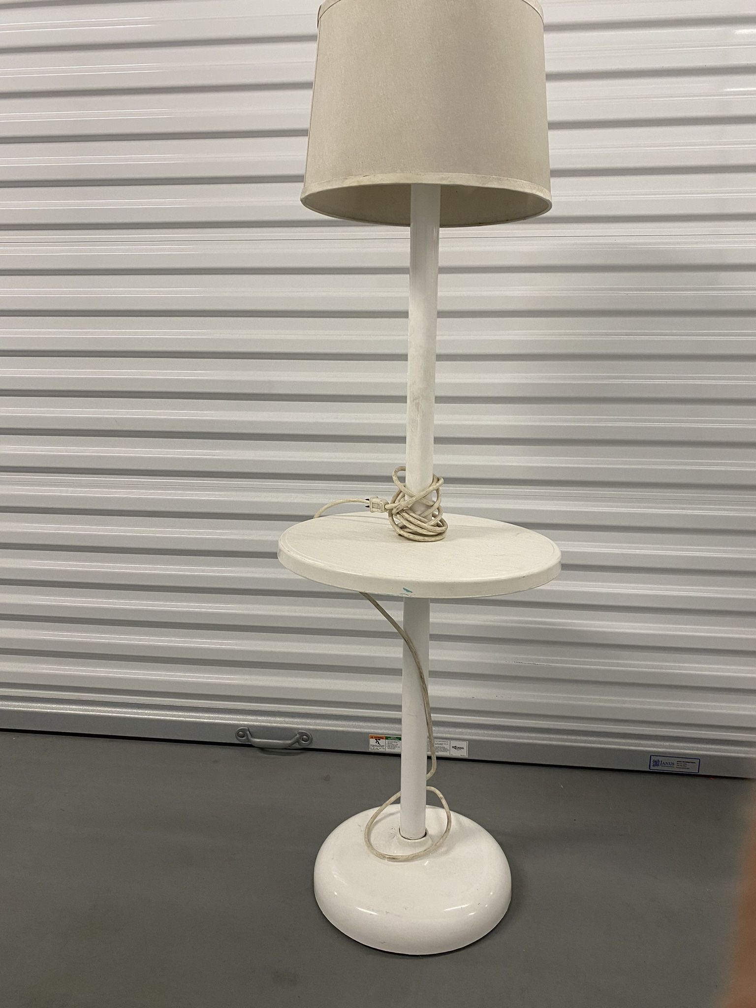 Outdoor Patio PVC Pipe Round Side Table w/ Lamp Will need new shade. Otherwise, everything works and is in good condition. 52.5"H Table 23.75"H x 17"D
