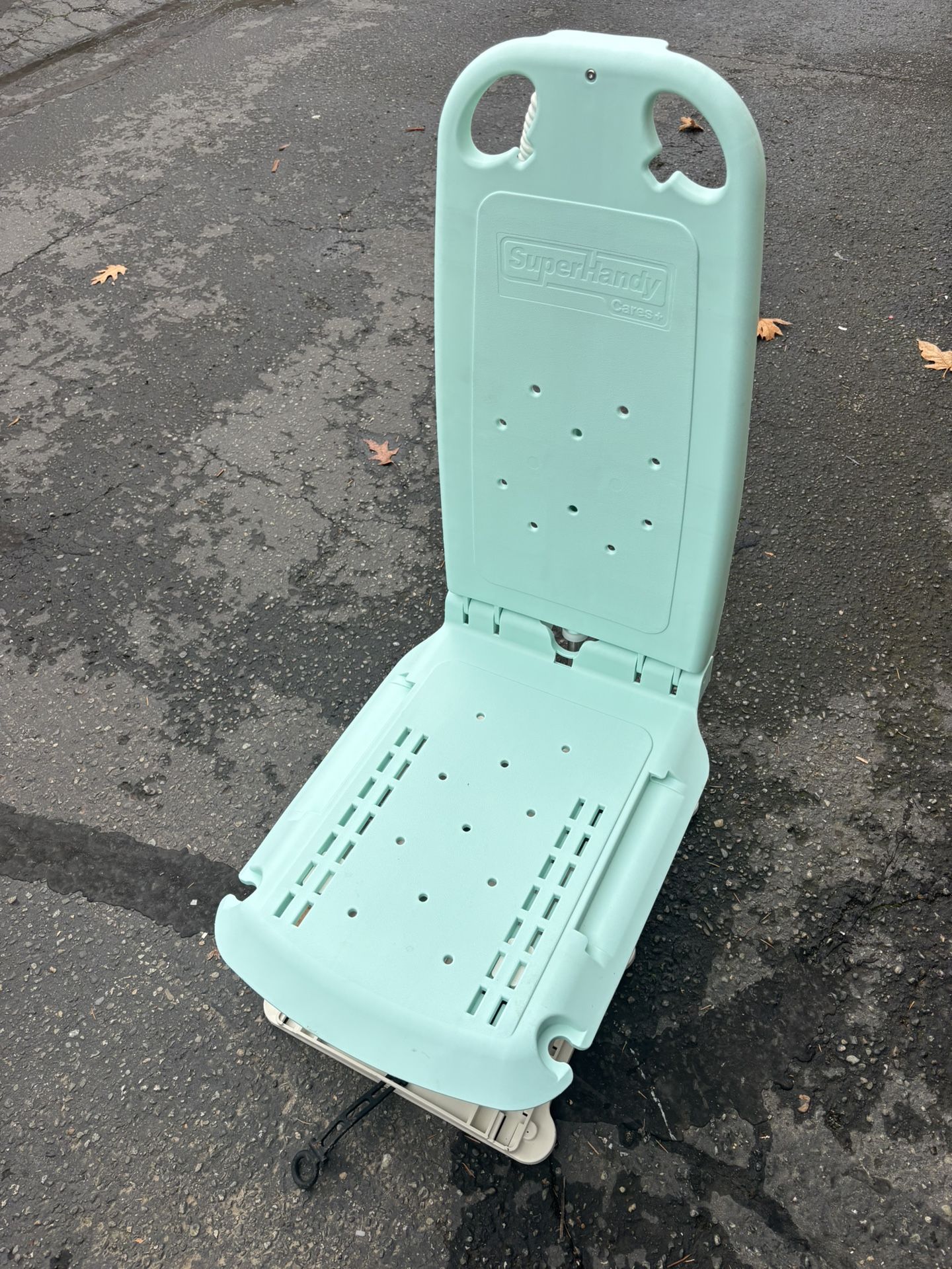 Description: SuperHandy Cares+ electric bath lift chair, perfect for seniors or anyone with limited mobility. Helps safely get in and out of the bathtub with the push of a button. ✅ Comes with wired remote control and rechargeable lithium battery ✅ Smooth up and down lift motion ✅ Foldable backrest for easy storage ✅ Water-resistant and easy to clean ✅ Mint green color, excellent working condition Condition: Used – very good condition