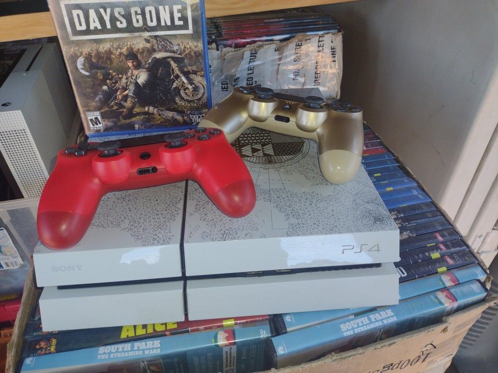 Ps4 is in great shape. Comes with all cords 2 controllers n 1 game. Gold controller doesn't work the best. Drifts alot. But other then that everything else is good. Can meet $265