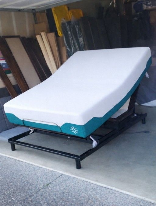 Very high quality queen size Simmons Ergomotion NuFlex model adjustable bed base purchased new close to 6 years ago and in very good condition with just some minor upholstery wear & tear in a few spots but absolutely no other issues, was used half the time as a guest bed in a spare bedroom so never had much use and is very solid built and in perfect working order, both the head and foot sides elevate up and down with the included wireless remote and it operates very smoothly and quietly. Features head and foot articulation, massage, Zero Gravity positioning, incline presets, chocolate microfiber upholstery, low-profile and "wall-saver" design, among other features that are listed below and comes with its electric power cord and front metal retainer bar (which keeps the mattress from sliding off). Also has removable legs and works with any drop-in bed frame. Includes a newer 2-year-old high quality queen size Zinus Priage model 12-inch thick gel memory foam mattress in excellent condition with no stains or tears and is very comfortable and supportive with a medium feel between soft and firm and works perfectly with the bed base. Its zippered cover is also removable / machine-washable. From a nonsmoking home Selling the set for $300 (retailed new $1,648 = $1,299 base + $349 mattress) and can deliver for $60. BED BASE ADDITIONAL FEATURES *Wireless remote *Simple, easy-to-understand buttons *The bed can be lowered during a power outage or remote failure *Operable with or without legs (legs are included) - zero clearance design allows installation in just about any bedframe *Low-Profile Design *Headboard brackets are an optional accessory *Lift capacity of 750 lbs. *Sized to fit any standard bed frame, including most beds with headboards and footboards *1-Piece Base Construction *Finished in a contemporary chocolate brown microfiber fabric *Manufactured by Ergomotion