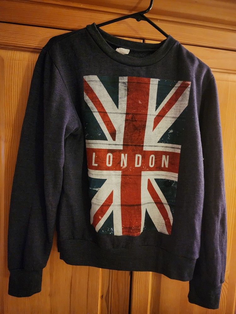 NEVER WORN SIZE: MENS MEDIUM COLOR: BLUE BRITISH GRAPHIC DESIGN FLAG IN FRONT INSIDE FLEECE WARM & COZY