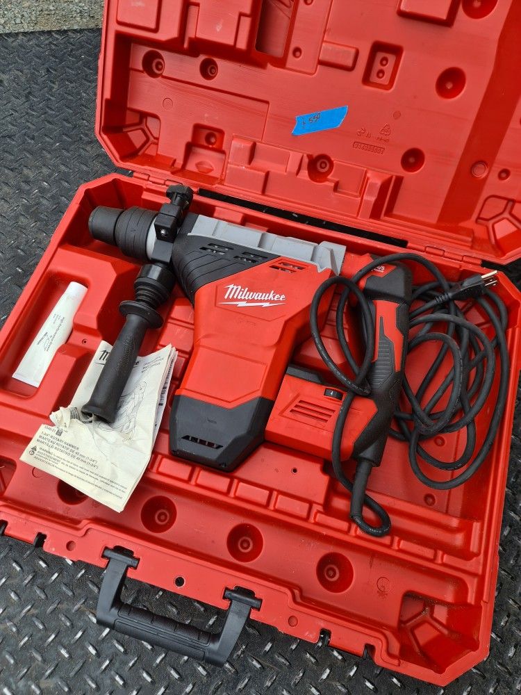 in like new condition. Milwaukee 15 Amp 1-3/4 in. SDS-MAX Corded Combination Hammer with E-Clutch AUTOSTOP E-Clutch delivers maximum control and enhanced safety Powerful 15A motor with 8.1 ft-lbs. of impact energy Built to last in the toughest applications The MILWAUKEE 1-3/4" SDS Max Rotary Hammer has a powerful 15A Motor capable of delivering 8.1 ft-lbs of impact energy for the most demanding applications. The AUTOSTOP E-Clutch prevents over-rotation of the tool in case of tool lock up giving users a more controlled experience while using the corded rotary hammer drill. The variable speed dial allows users to set the optimal speed per application while two modes, Rotary Hammer and Hammer Only, allow easy transitions between drilling large holes or chipping applications. When chipping, a lock-on button allows users to chip without constantly pulling the trigger. Built-in Advanced AVS (Anti-Vibration System) minimizes the vibration users feel while using the rotary hammer drill. 422