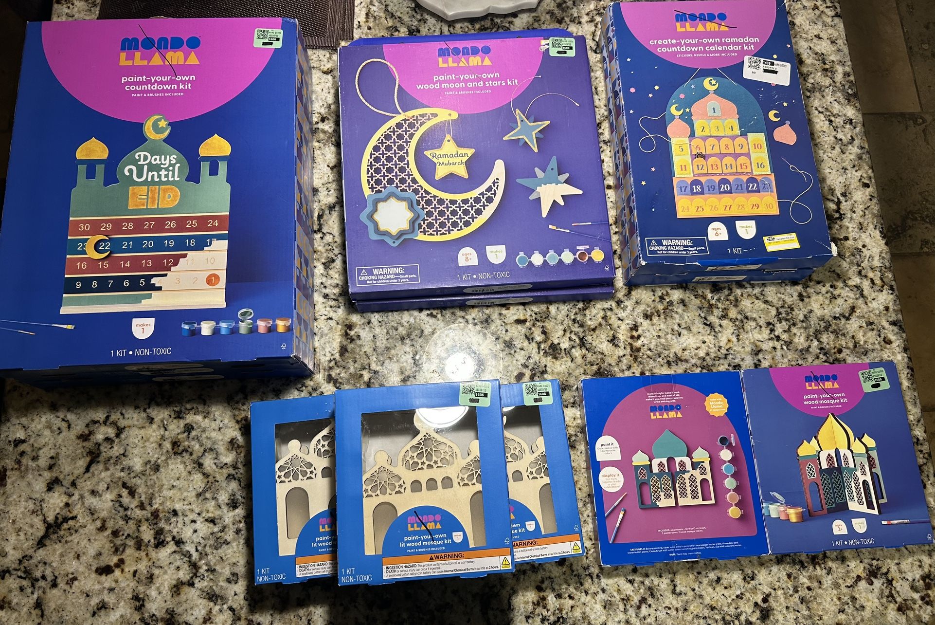 I have an assortment of kids Ramadan crafts! Have multiple of each and can bundle if you buy multiple. Lit wood mosque kit (3 available) - $4 wood mosque kit (2 available) -$4 Countdown kit (3 available) - $8 Wood moon & stars kit (2 available) - $8 Countdown calendar kit (2 available) -$8 Pick up in Jamestown