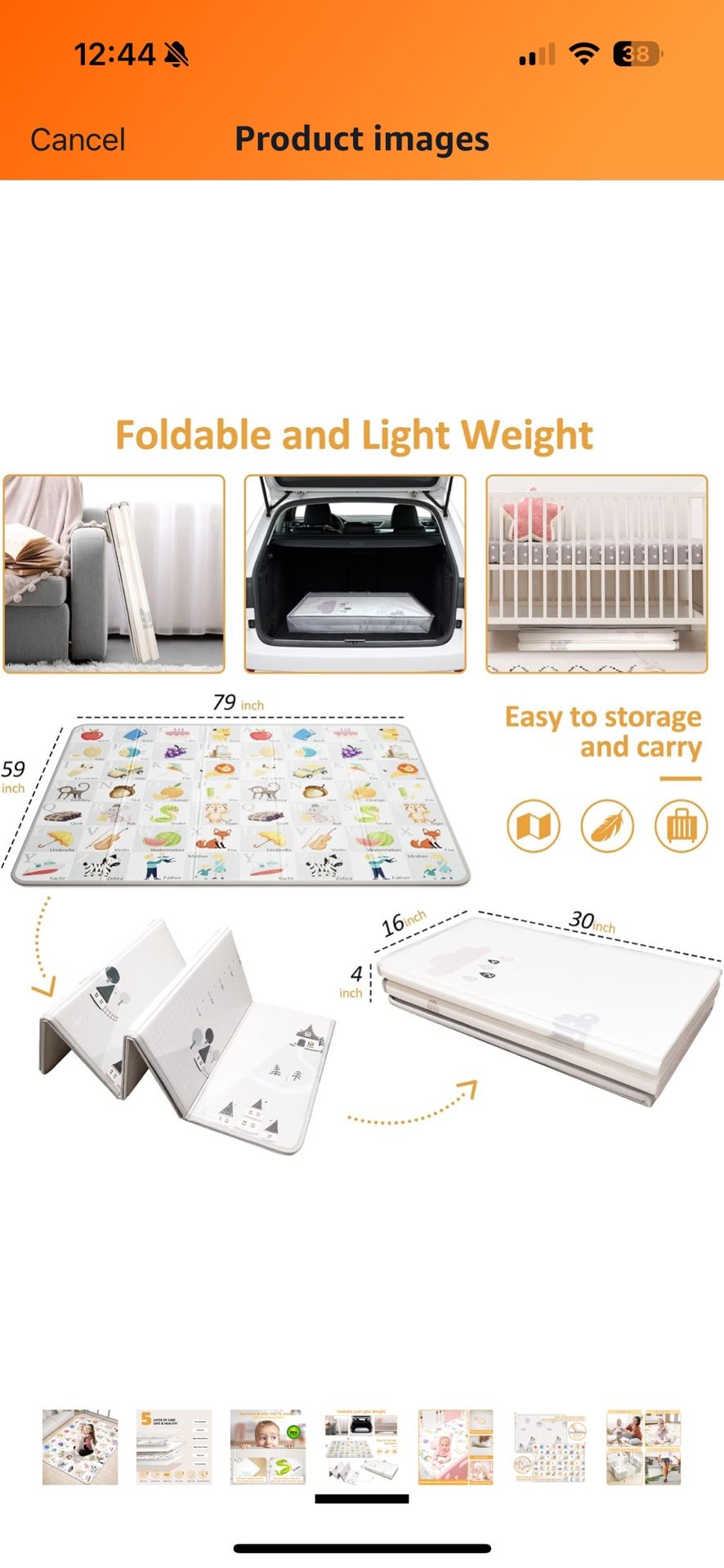 Baby Floor Mat,Baby Play Mat 79"x59",Reversible Foldable Baby Playmat,Waterproof Anti-Slip Foam Playmat Non-Toxic Portable Baby Crawling Mat for Infants, Toddler, Kids, Indoor Outdoor Use