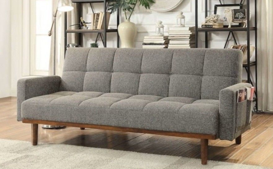 Brand New Grey Retro Style Futon Sofa Sleeper