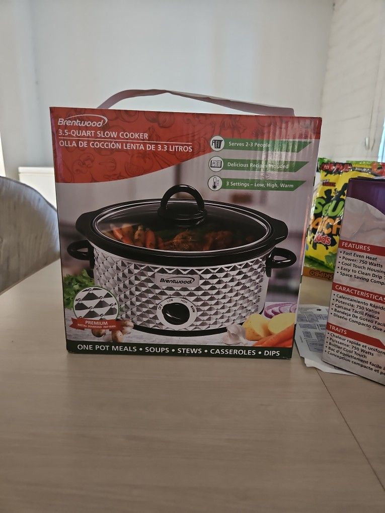 Serves 2-3 people, delicious recipes included, 3 setting low, high, warm