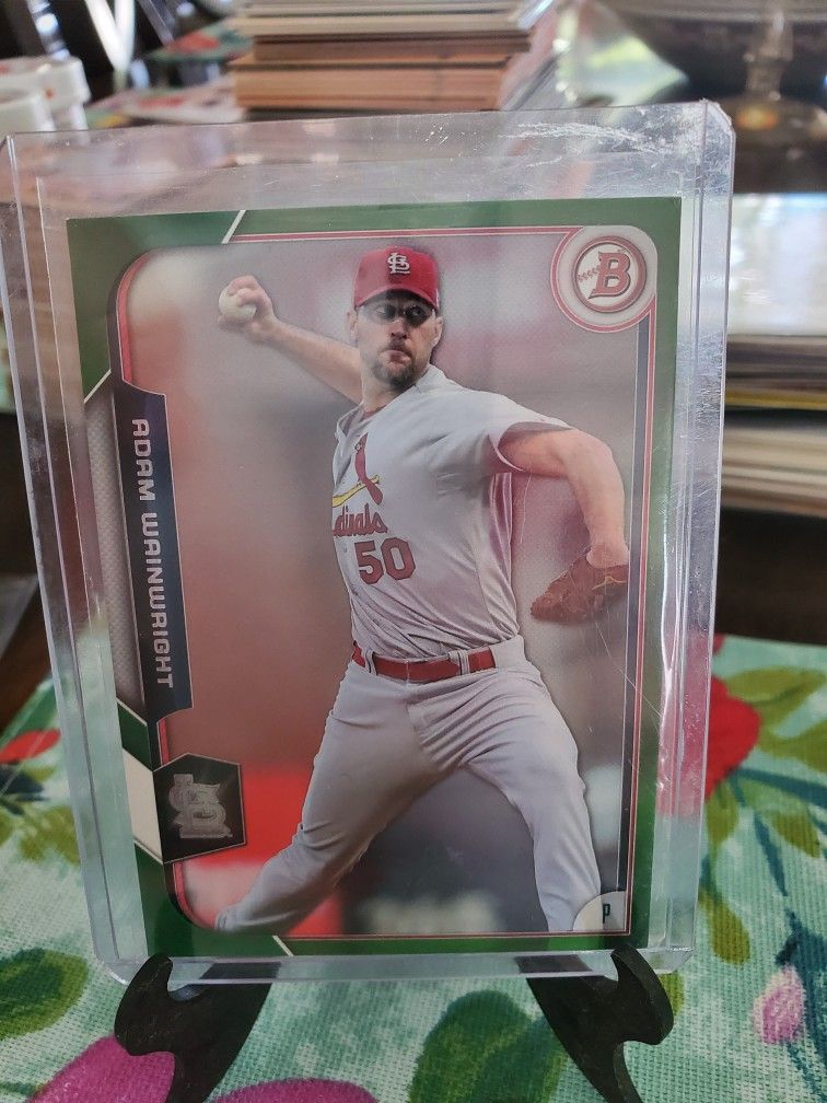 St.Louis Cardinals Adam Wainwright 2015 Bowman Green Parallel Serial Number 95/99 Baseball Card in Near Mint condition Card will come in Penny Sleeve and Top loader