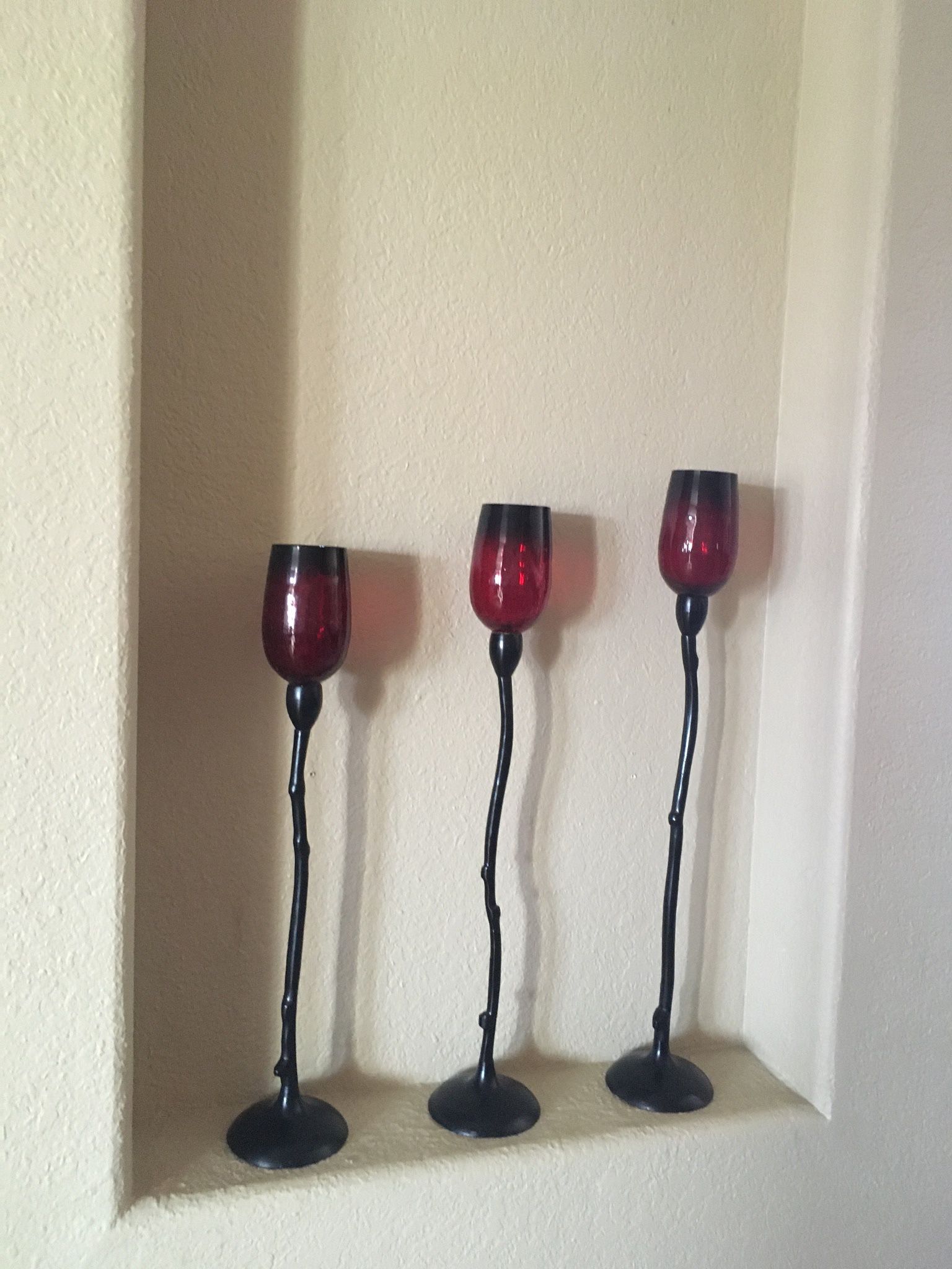 3 pieces red and black candle holders
