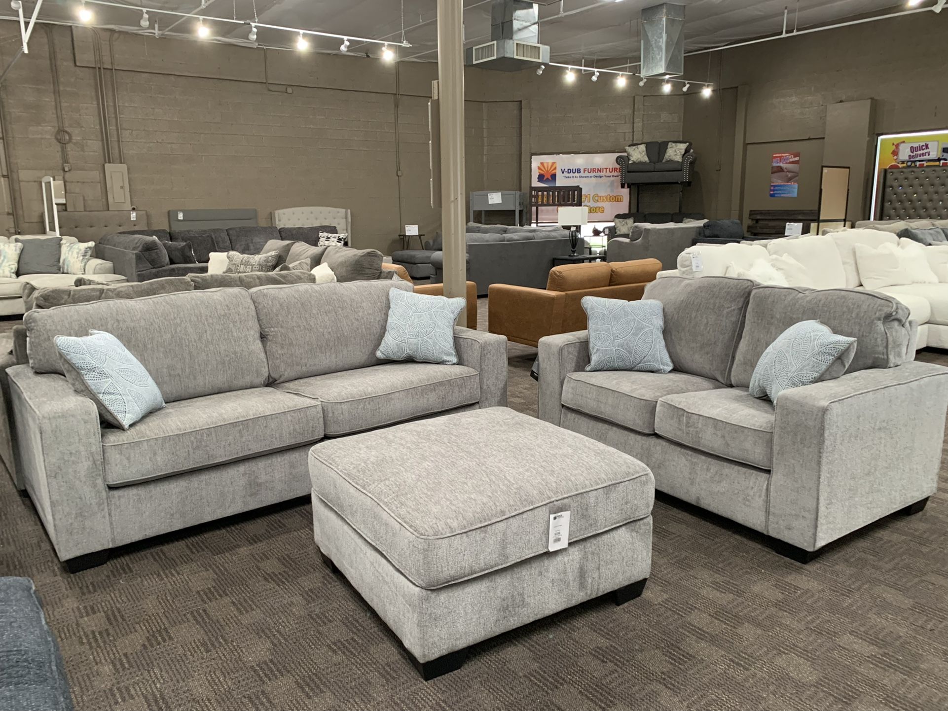 Brand new sofa and love seat set. Attached back pillows, soft grey fabric, accent pillows. Comfortable seating. Delivery and financing available