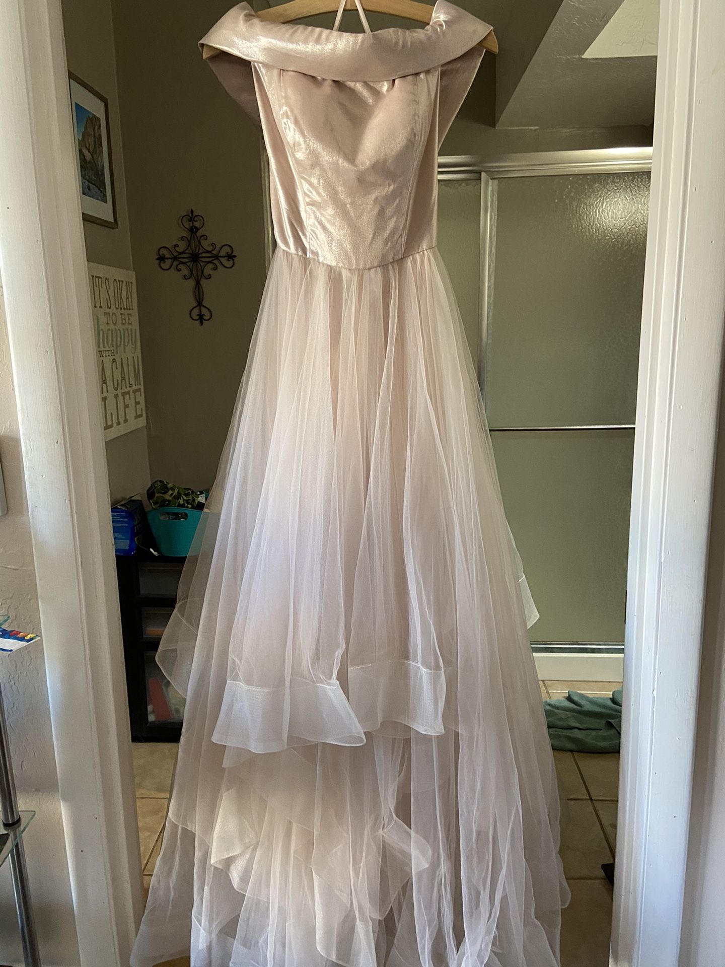 New dress. Never warn! Size 4. Off the shoulder with tool bottom! Make me an offer! Beautiful blush color