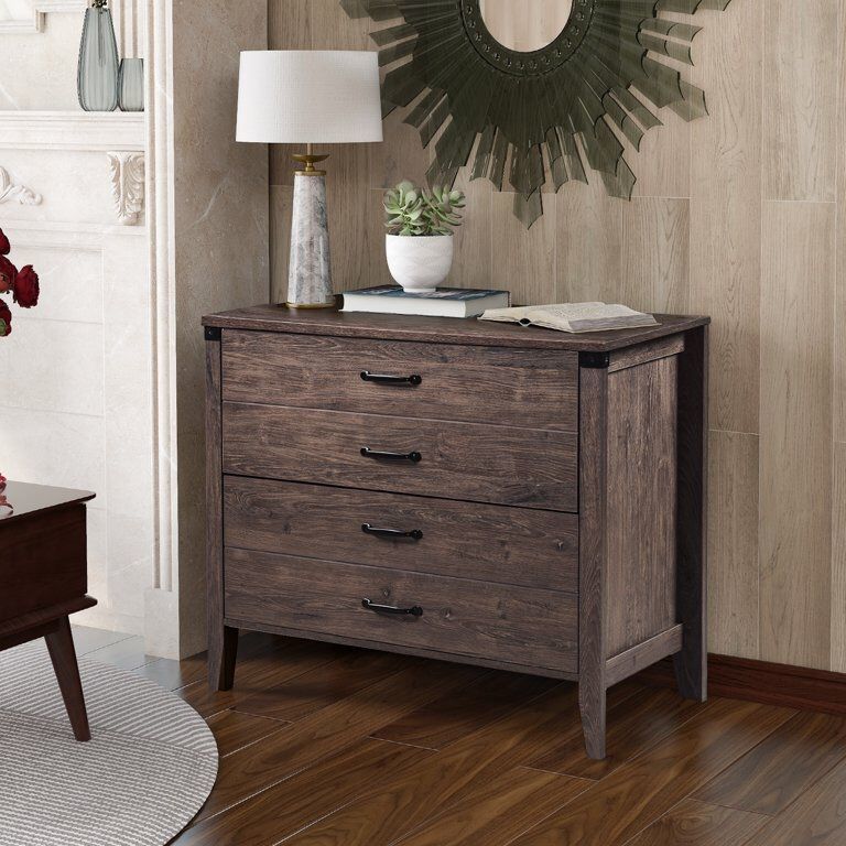 Home Office Lateral File Cabinet Organizer Storage with 2 Drawers (Brown)