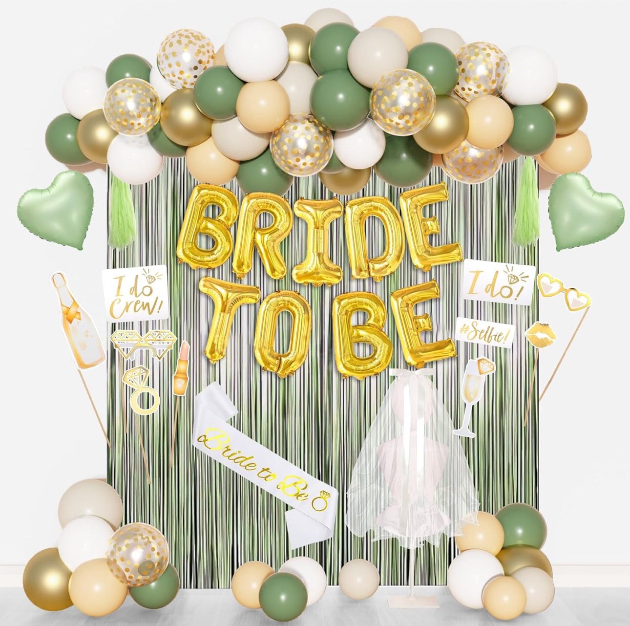 Amandir Bachelorette Party Decorations Supplies, Sage Green Bridal Shower Decorations Bride To Be Sash Veil, Nude White Gold Confetti Heart Balloons,