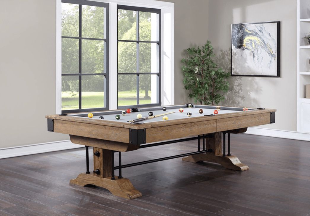 The Falmouth 8-Foot Pool Table in Pine Weathered Brown is a striking game room centerpiece, crafted entirely from solid wood for elite playability and quality. Its hand-applied, catalyzed varnish finish enhances the natural wood grain while resisting water rings, scuffs, and daily wear. Featuring a two-piece T-nut rail system, BCA-compliant "Ultimate Response" K-66 cushions, and precision-cut three-piece slate with solid wood support, this table ensures optimal performance. With a 1-1/2" thick cabinet and sturdy triple-anchor leg support, it offers exceptional durability and strength. Includes new standard cloth, any color Includes playing equipment Simonis professional cloth available Contact us or visit DrBilliards. com 305>332>4412 Delivery and professional installation available 1321 Ne 163rd st North Miami Beach 33162 Open 7 days by appointment
