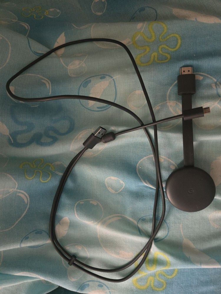 Google Chromecast with HDMI and USB cables.