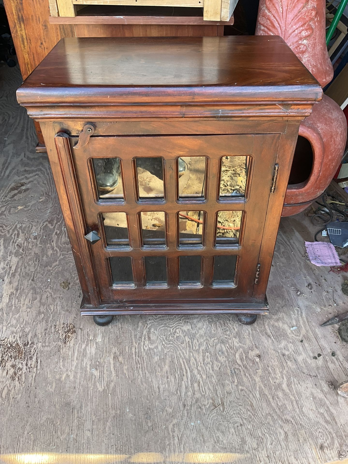 Very pretty cabinet it’s 28 inches tall and 13 by 21 inches across the top