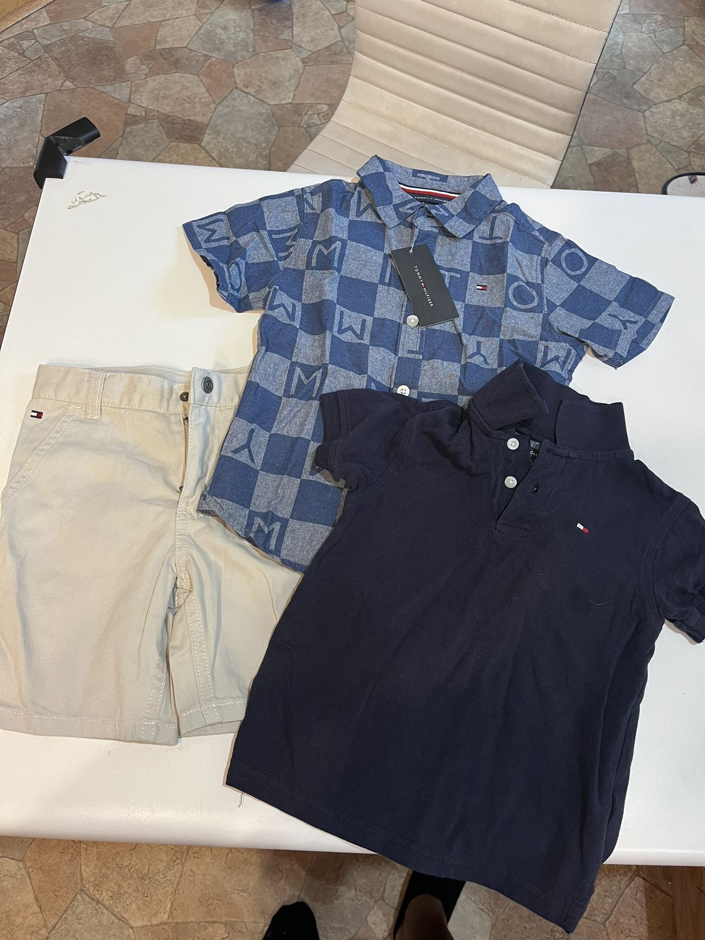 Very cute set! Great price! Only asking $20. Set includes khaki shorts , polo, and checkered button up. Shorts and button up are brand new and polo was only worn a couple of times. Still in very good condition