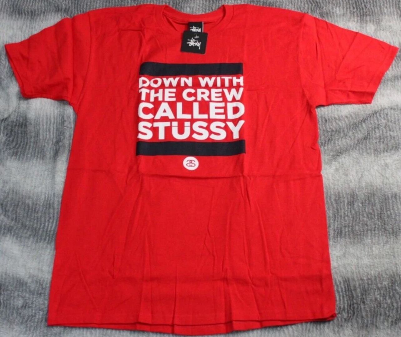 🔥 Stussy “Down With The Crew” Red Tee - Size Large Description: Men’s Size Large Stussy “Down With The Crew” Red Tee (Style #1902949). Classic streetwear look with bold Stussy print on the front. Soft cotton fabric, great fit, and perfect for everyday wear or collectors of Stussy gear. ✅ 100% Authentic