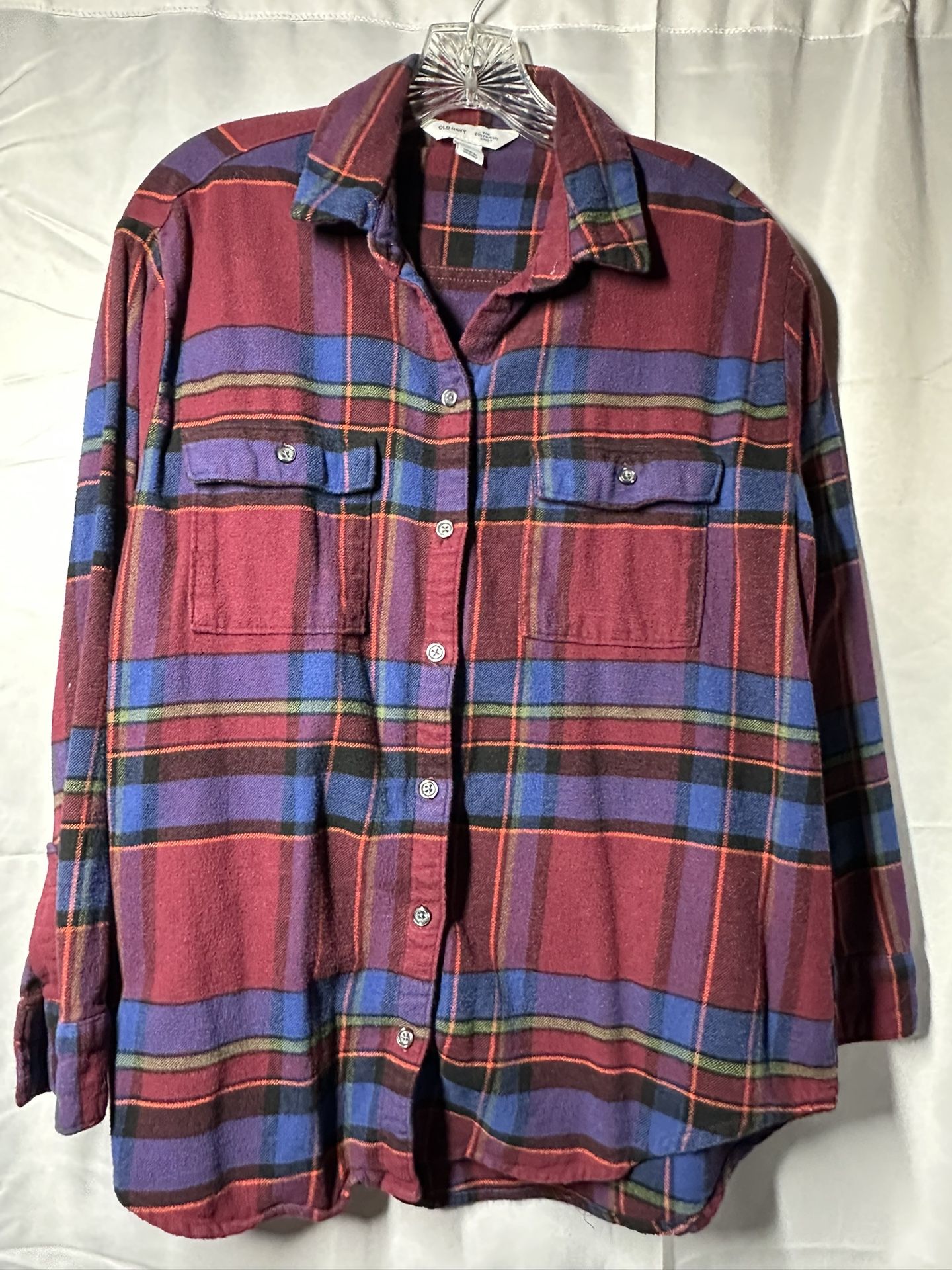 Old Navy Purple and Red Plaid Flannel Button-down Shirt