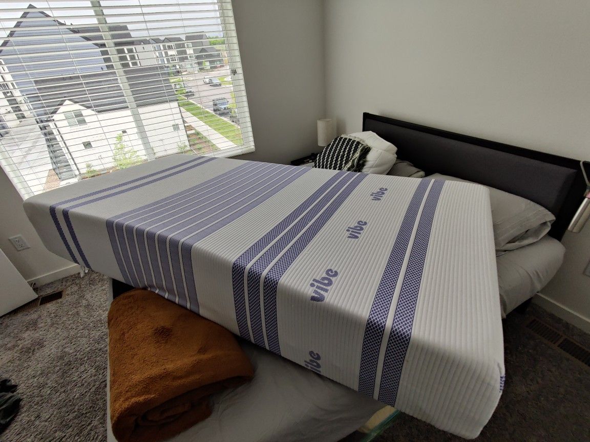 Hi, this is a gently used mattress which I need to sell because I moved to a new place. Always used with a mattress protector on top, so it's in extremely good condition I also have a Zinus "Shawn" bed frame that can be paired with this mattress which I am willing to sell for $75.00 with the mattress if need be. The bed frame is also in excellent condition and comes in the original shipping box.