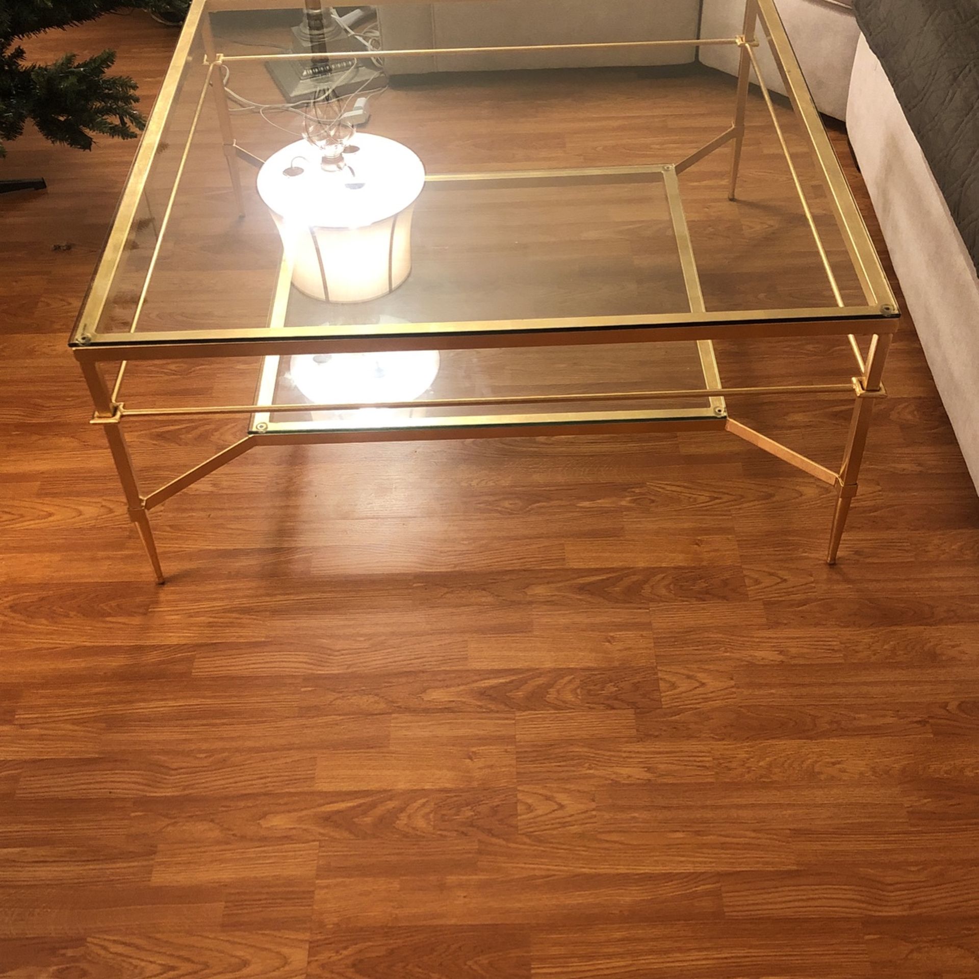 Very nice glass with gold Frame coffee table 43x43 or 3 f and 7 inches I bought this coffee table 6 months ago $900 Text me your offer thanks