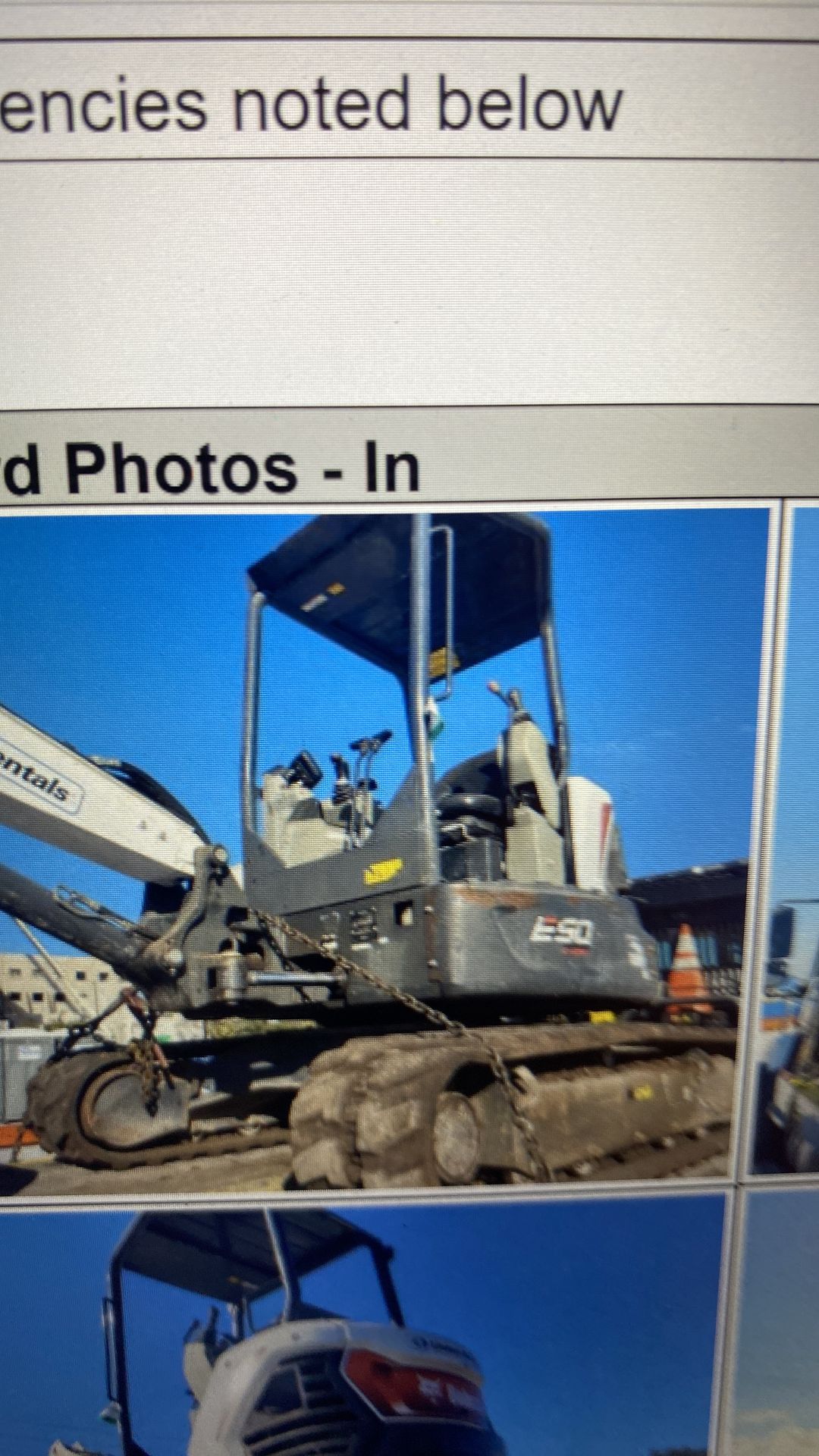 2021 Bobcat E50 mini excavator with hydraulic thumb and bucket hours 2940.00 serviced every 250 hours