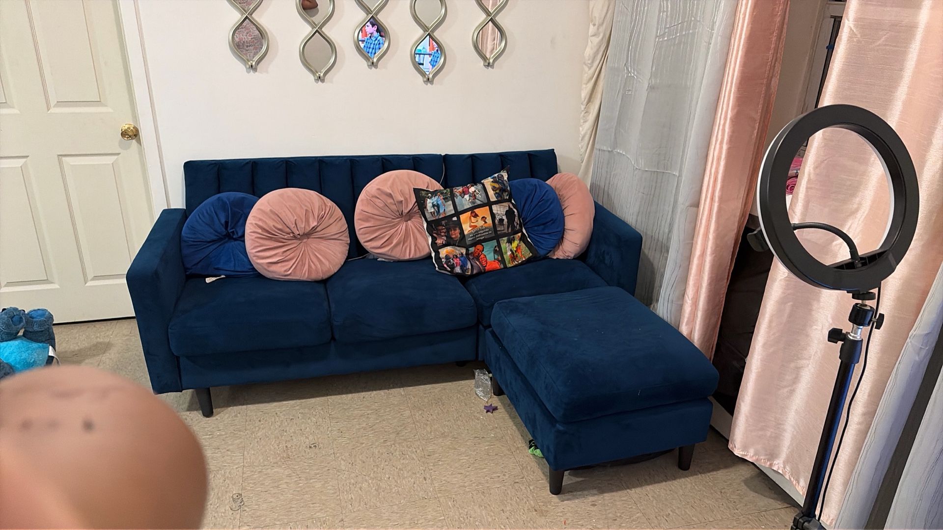 Small sectional couch. I bought it for the time being until I can afford what I really want.