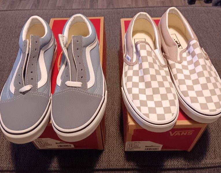 Vans Shoes Size 5.5 Mens 7.0 Women's Chekers Tan Slip-on. Sky Blue Old School Brand New