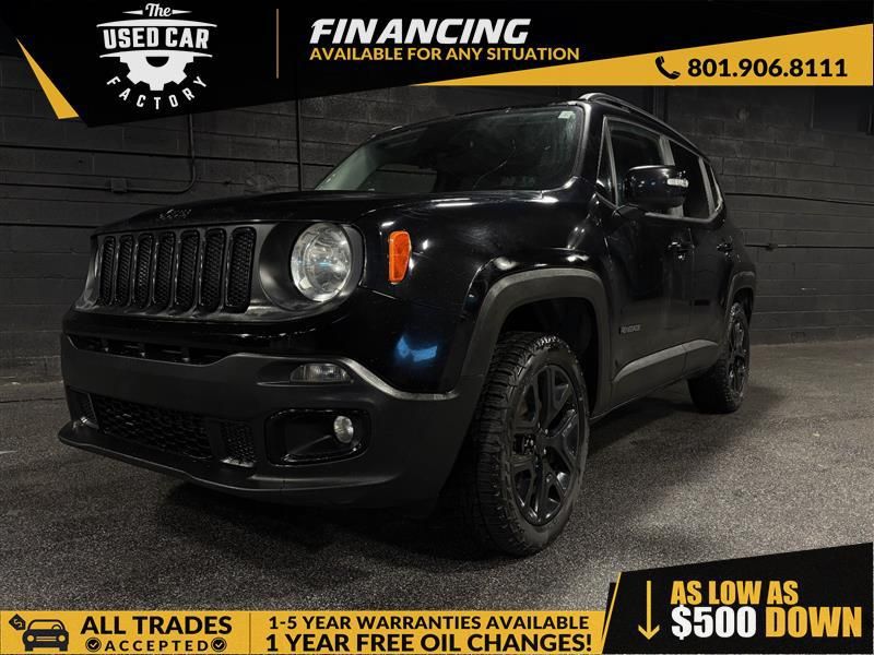 We can get YOU a LOAN!Good Credit, Bad Credit, ITIN Social, Buy Here Pay Here.ALL Trade-ins accepted! (Even if you owe money or it's broken)Warranty options available on EVERY vehicle.1040 Prospect St, Salt Lake City, UT 84104 DL - 462APLEASE CALL OR TEXT TO SCHEDULE AN APPOINTMENT TO ENSURE THE VEHICLE IS AT THIS LOCATION! Phone Number: 801-906-81112017 Jeep Renegade Altitude 4WD, clean title.This Renegade brings rugged Jeep capability in a smaller, sporty package with its 4WD system and signature Altitude styling. A comfortable interior and great fuel economy make it perfect for both city driving and weekend exploring.