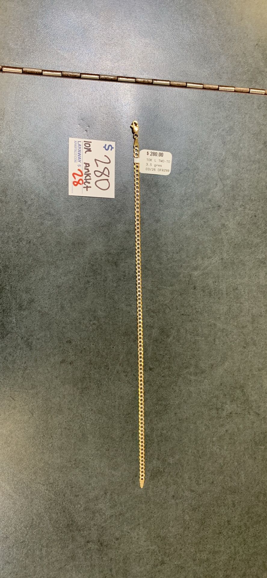 Selling a 10k Cuban Link Anklet Length is 10.5in. Weight is 3.5 grams Priced at $280 plus tax Available for layaway only $28 down Located at Cash America on Normandy #2252
