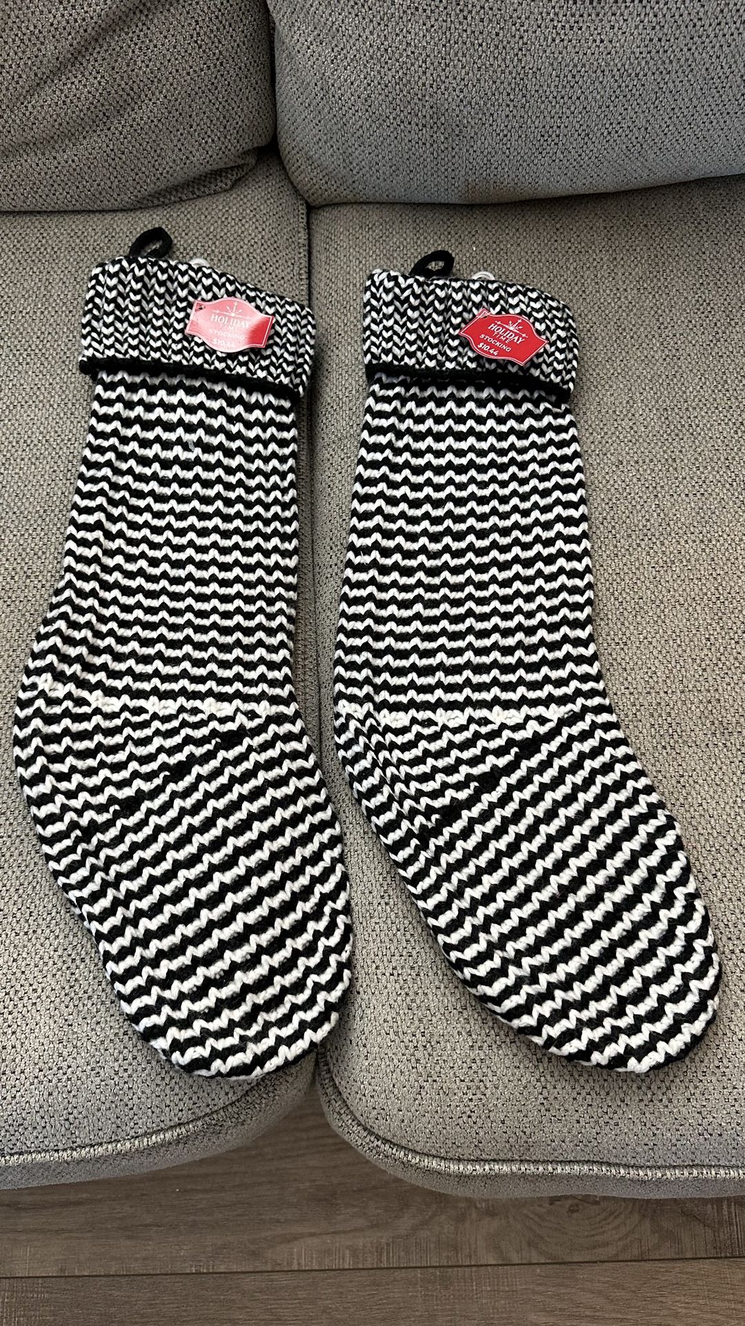 Black and White Holiday Knit Stocking: New w/tags @ $10 each. (7 qty available). Willing to discount @ $60 total if you purchase all 7 together. Pick up in Tolleson off 91st Ave & Van Buren.