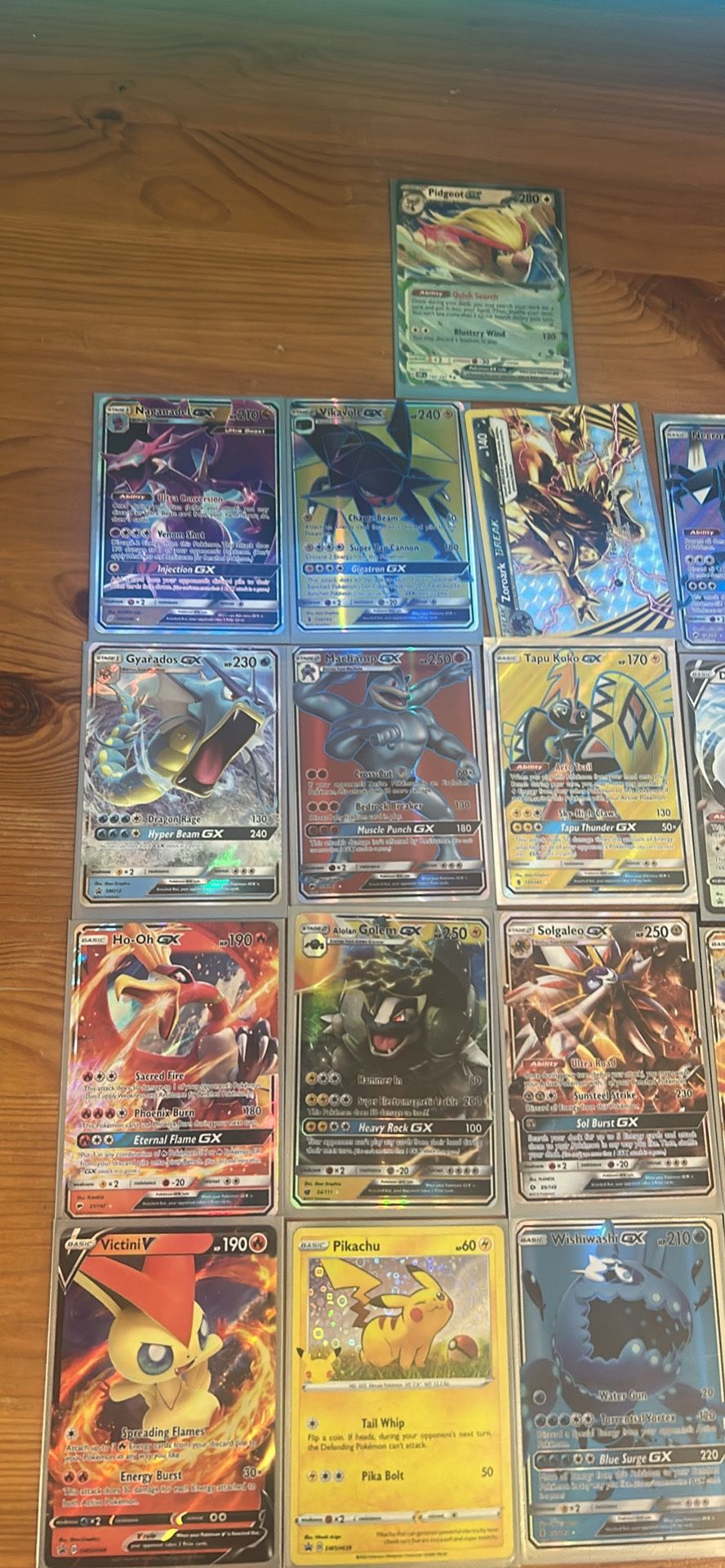 collection of Pokemon cards here! Has a bunch of cool GX, V, and BREAK cards. Many are holographic and look really nice. Comes with a stack of card sleeves too, so you can keep them safe. Good variety of different Pokemon.