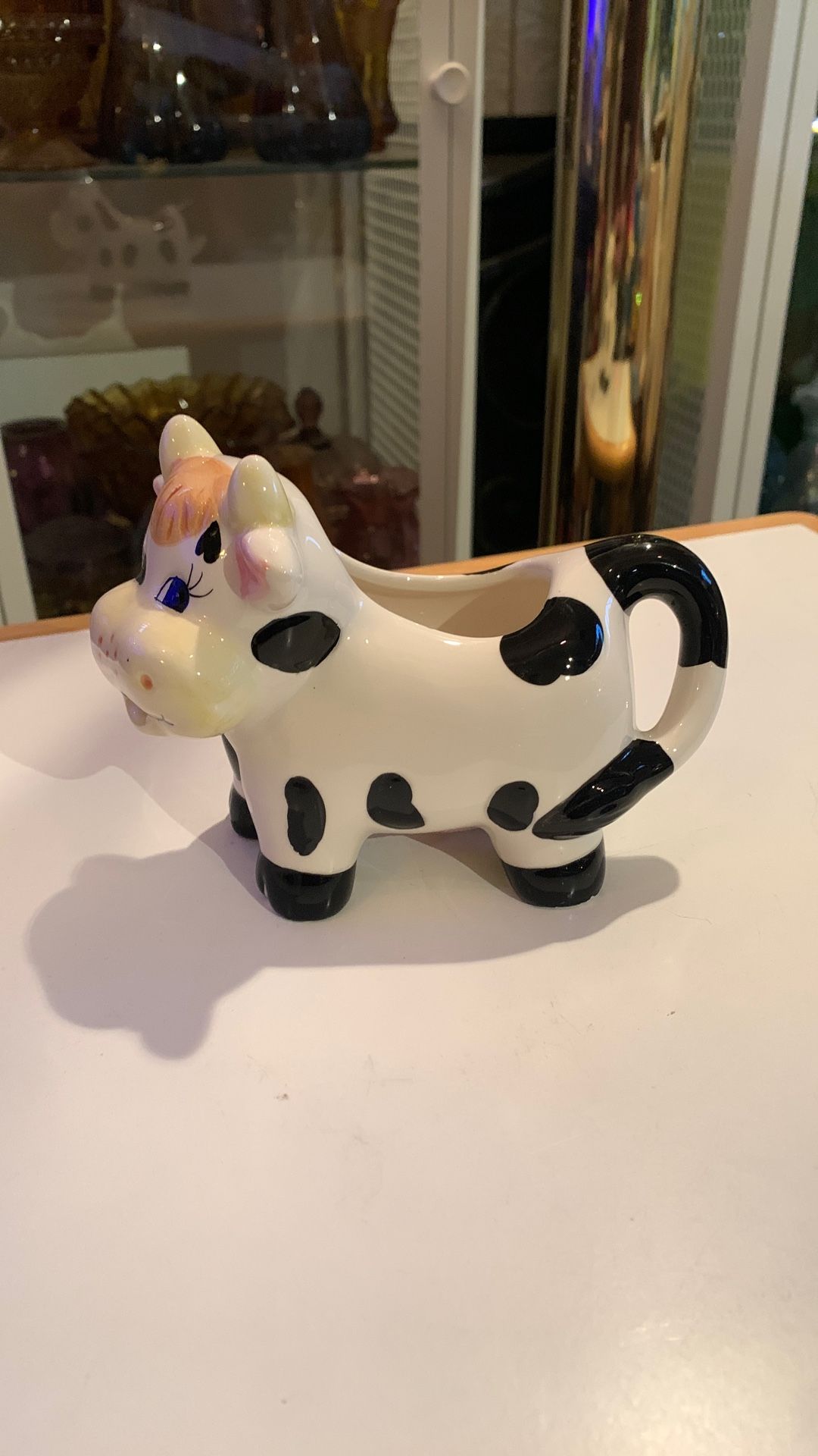 Vintage Porcelain Ceramic Whimsical Smiley Cow Creamer Cute