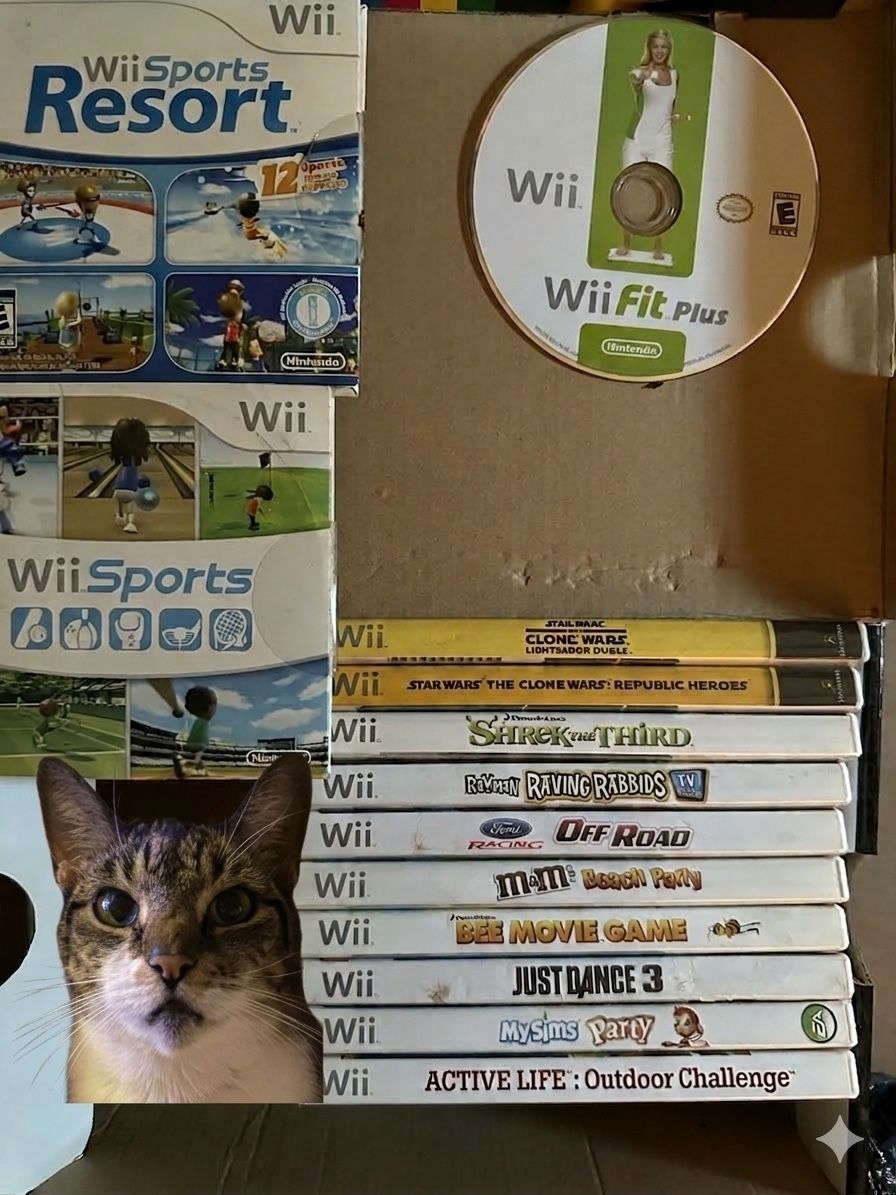 I’m selling Wii games only. Cheap Star Wars Clone wars x2 , Shrek , Rayman , Ford off-road , M&m beach party , Bee movie , Dance 3 , My Sims , outdoor challenge FREE GAMES Wii Sports , Wii Resort and Wii Fit. All of them for $50. All 13 games for $50 Cash only. No shipping