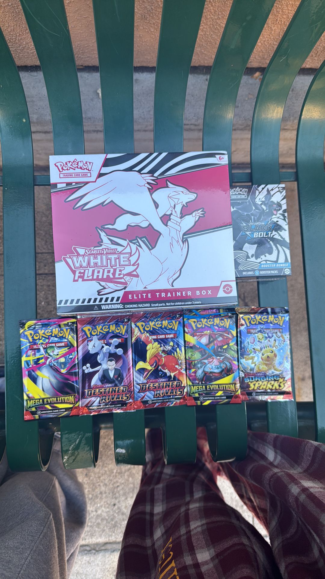 1 white flare Etb 1 black bolt booster bundle 2 mega evolution packs 1 sparking packs 2 destined rivals pack Firm on price
