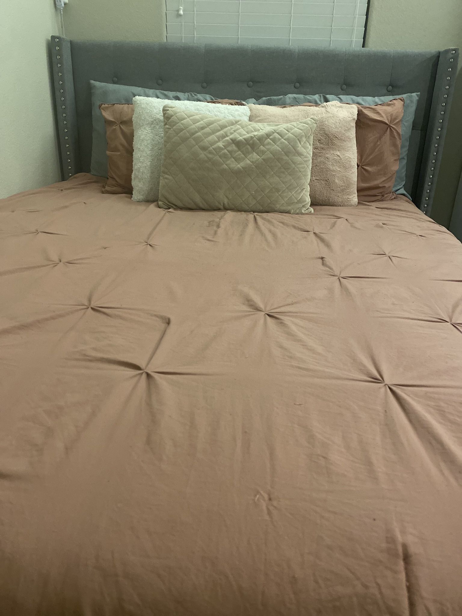 I have two Queen comforter sets that include two shams each. Great condition, hardly used. Beautiful dusty rose color with punch pleat detail. The last picture close up shows a more accurate color. Smoke free home. Asking $30/set. $50 for both