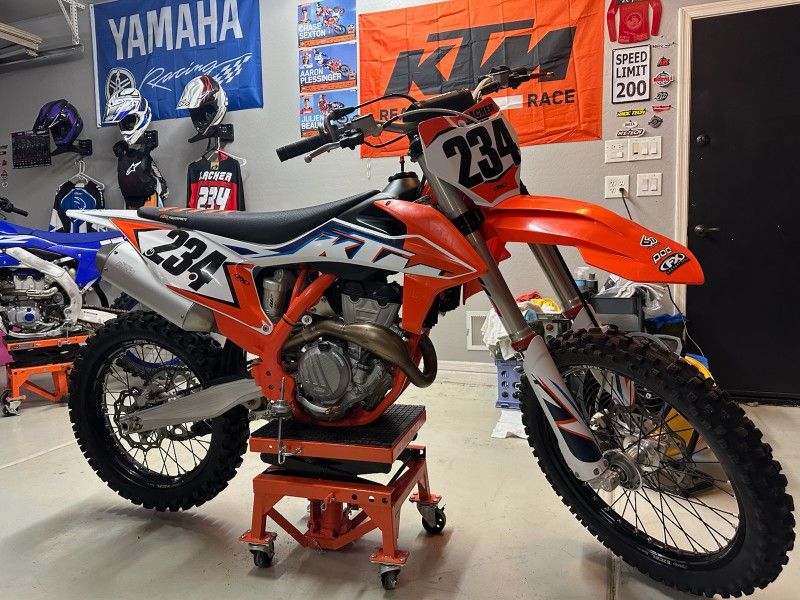 FOR SALE: 2022 KTM 350 SX-F 74.4 original hours • Always beginner owned • Clean and well cared for This is the unicorn everyone claims to have. Adult beginner ridden, not hammered like a rental bike at a bachelor party. MX-Tech Blackjack cartridge kit fork inserts (huge upgrade, not cheap junk) Regularly maintained, zero neglect Starts easy, runs strong, pulls clean through the revs Straight bike, no hacks, no mystery noises The 350 SX-F is the perfect middle ground. Light like a 250, torque like a 450, minus the hospital bills. Add the Blackjack forks and it feels planted, predictable, and way more forgiving than stock. Perfect for someone who wants a dialed bike without spending thousands after purchase. Clean title in hand. Serious buyers only. Message me for details.