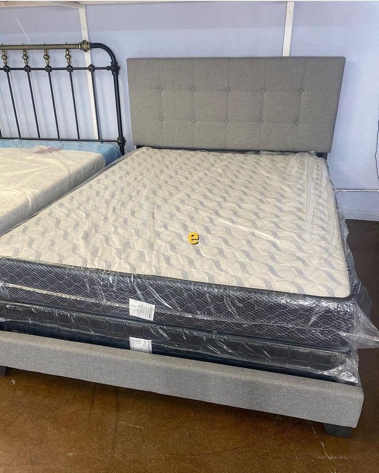 Brand New/ Gray Queen Bed Frame Cama// Mattress Sold Separately