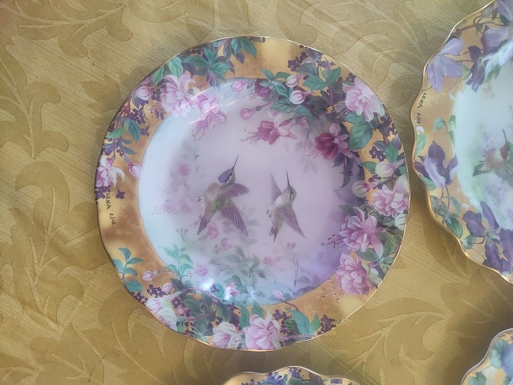 Numbered limited edition hummingbird plates. Gold rimmed.