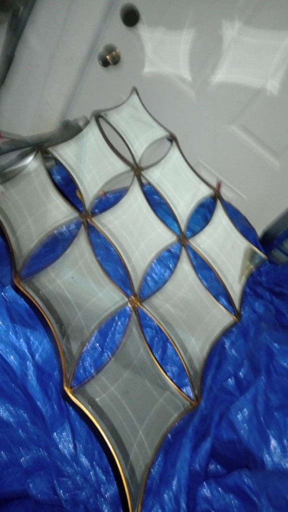 The nine individual mirrors are beveled. Nice wall hanging contemporary style mirror. 48" X 29" in great shape