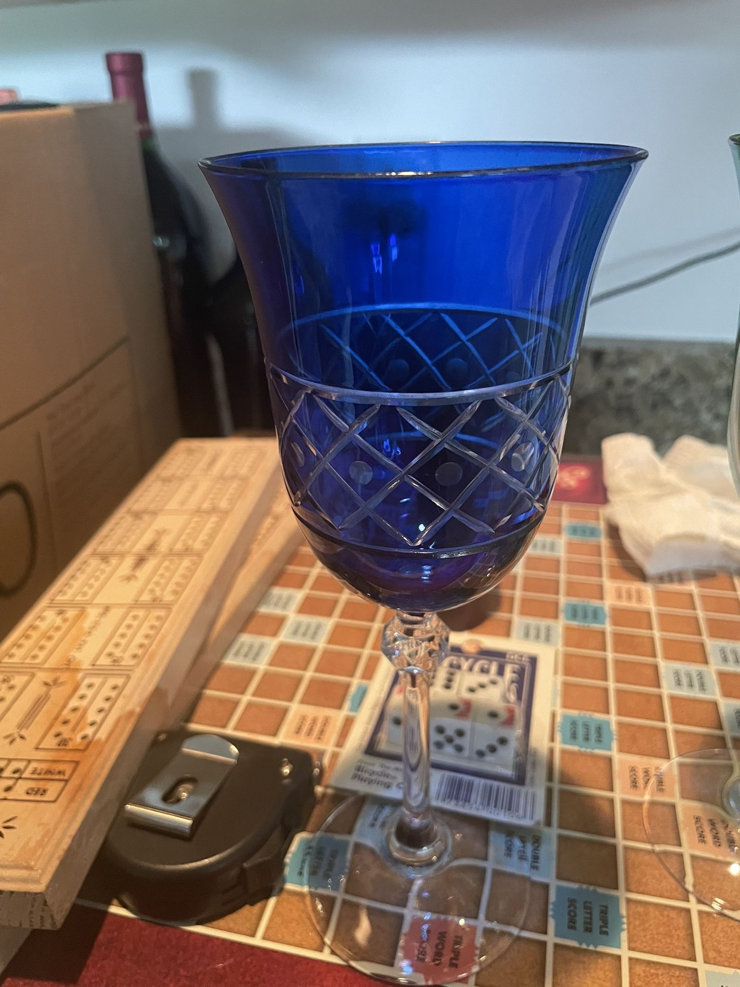 Vintage Le Sielle Cobalt Blue Crystal Wine Glasses, Italy, 1990's