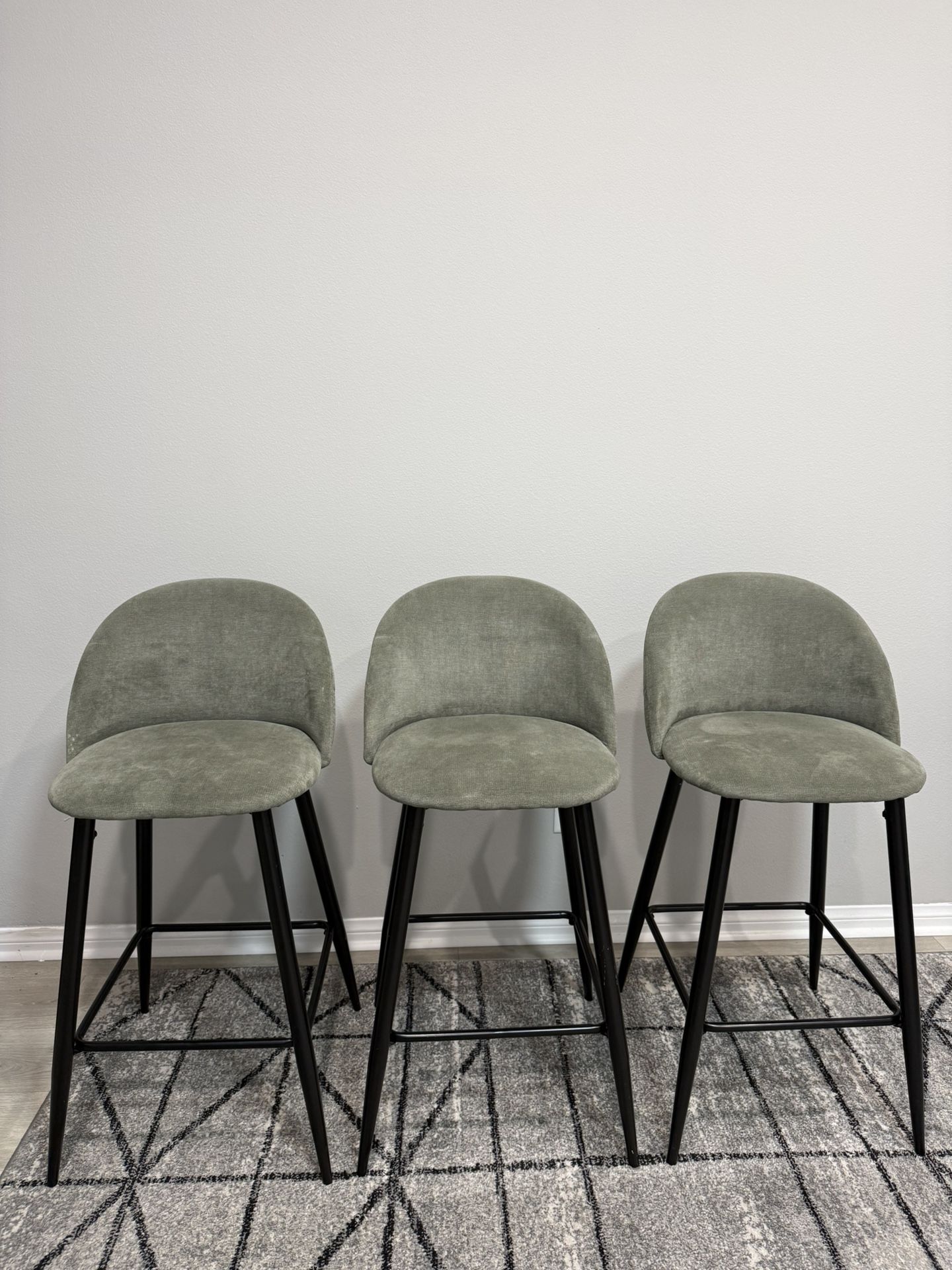 FOR PICKUP ONLY Stool width: 18” Stool height: 28” Stool back height: 10” Total height: 38” Width: 18” $20 each, $50 for all 3