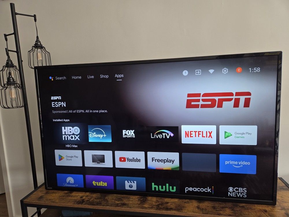 Great condition! Pick up only! Smart TV with streaming apps & live free channels! Built in Google assist Includes TV, remote & swivel TV stand. TV stand needs to be assembled. See link for all TV specs https://offerup.co/faYXKzQFnY?$deeplink_path=/redirect/