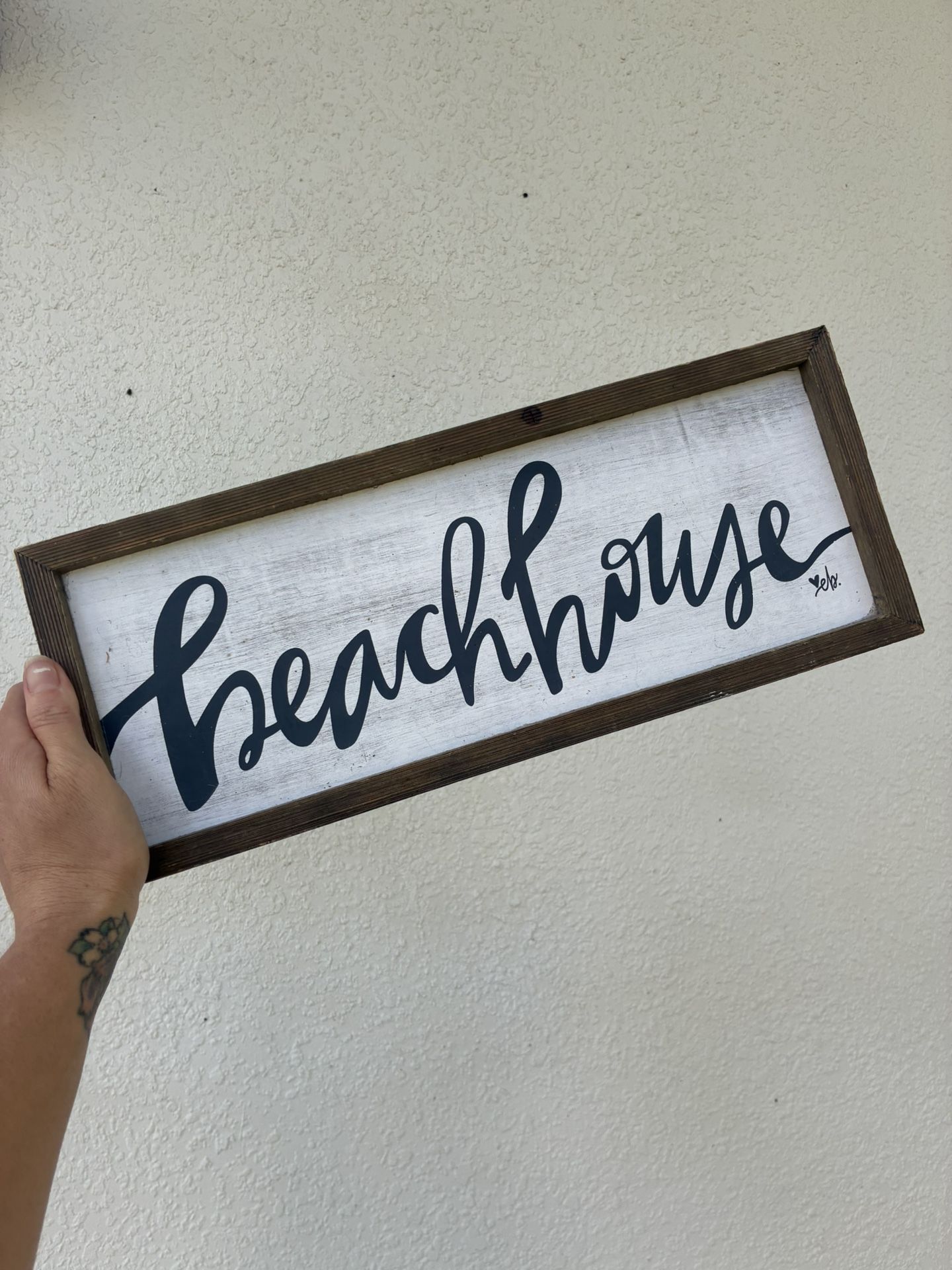 “Beach House” Sign This is your sign, everyone needs a beach house 🌊 🏖 Bring beach vibes to your home! Rustic wooden “Beach House” sign with white background + dark frame. Measures 15” x 6”. Lightweight and easy to hang. 💲 Price: $10