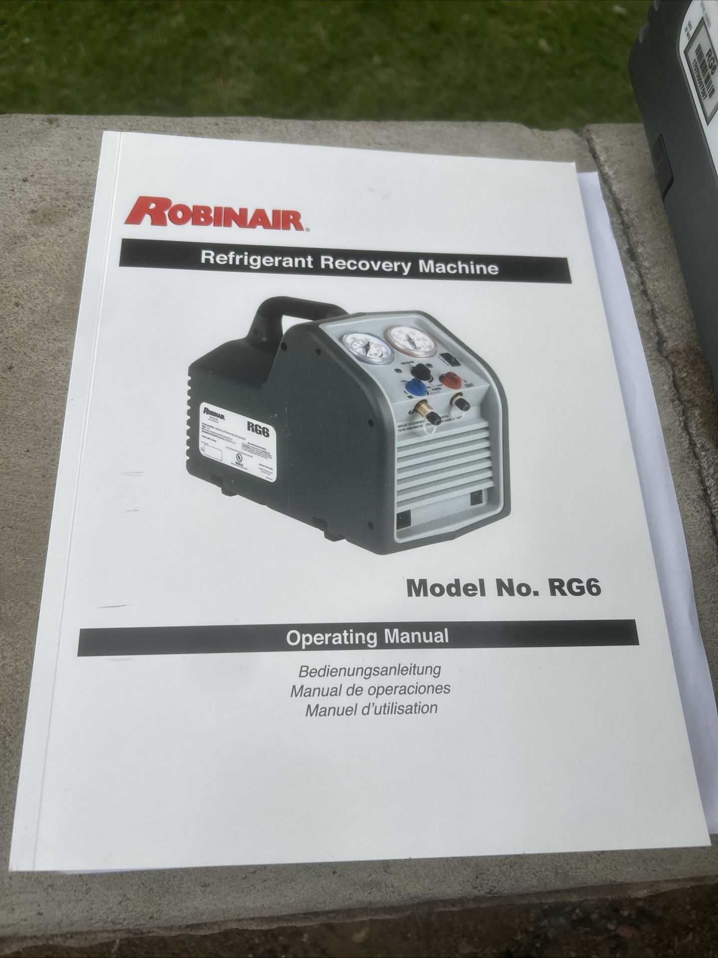 NEW OPEN BOX ROBINAIR RG6 Refrigerant Recovery Machine. This item was purchased for a project and never used. The box does show slight wear from being in the back of a service van. I did open the box hook it up tested it insured. Everything is working properly. Please check out often. I have another Rob air recovery unit going up and many items getting ready to be posted. I will say that eBay is not the only place I’m listing this item. feel free to call me question esta nuevo nomas se uso para un trabajo trabaja al 100 si tuenes una prejunta deja me saver porvor bueno dia