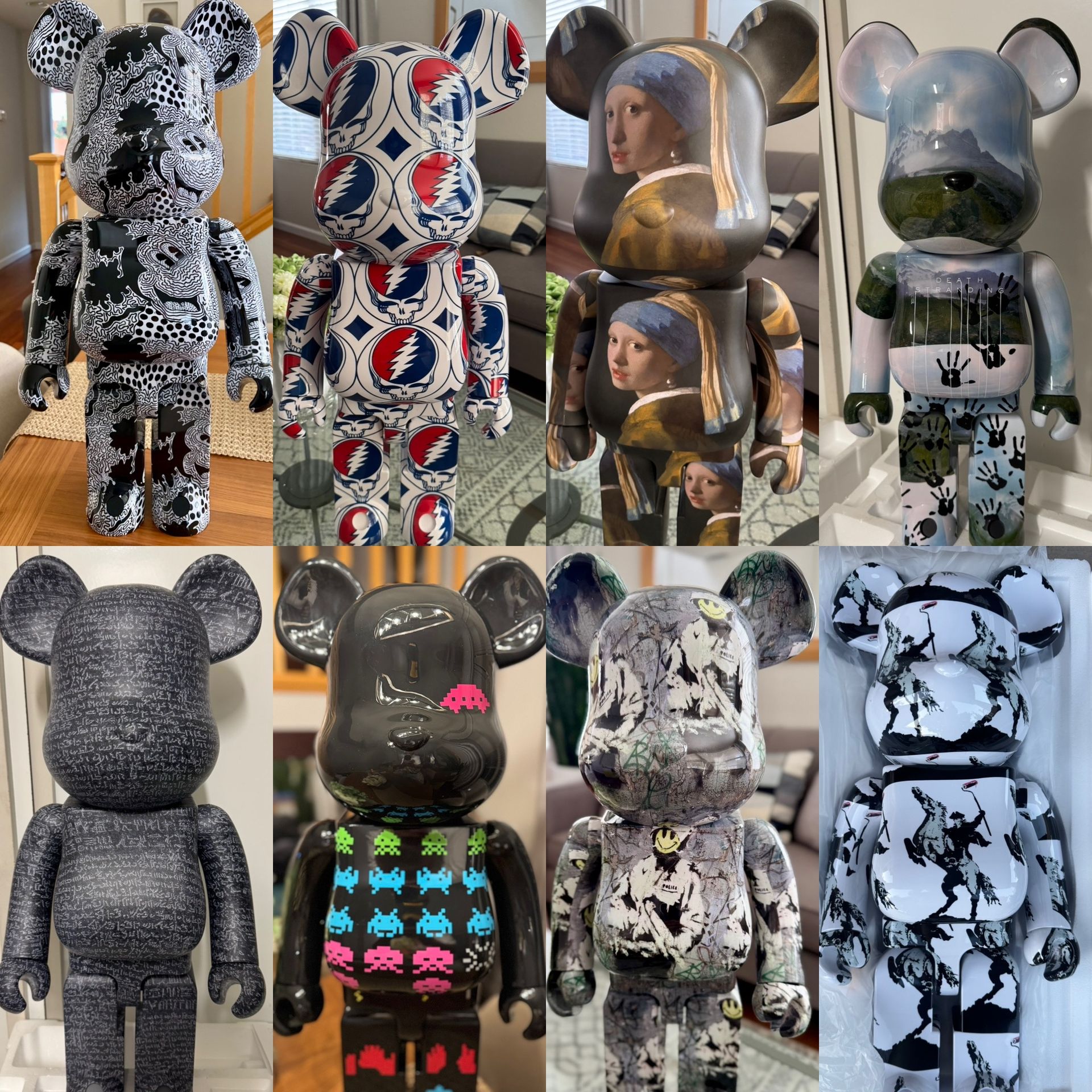 1000% Medicom Bearbricks 280 Each 280 Each, No Boxes Banksy, Haring Mickey, Vermeer, Invader, British Museum, Grateful Dead, Death Stranding