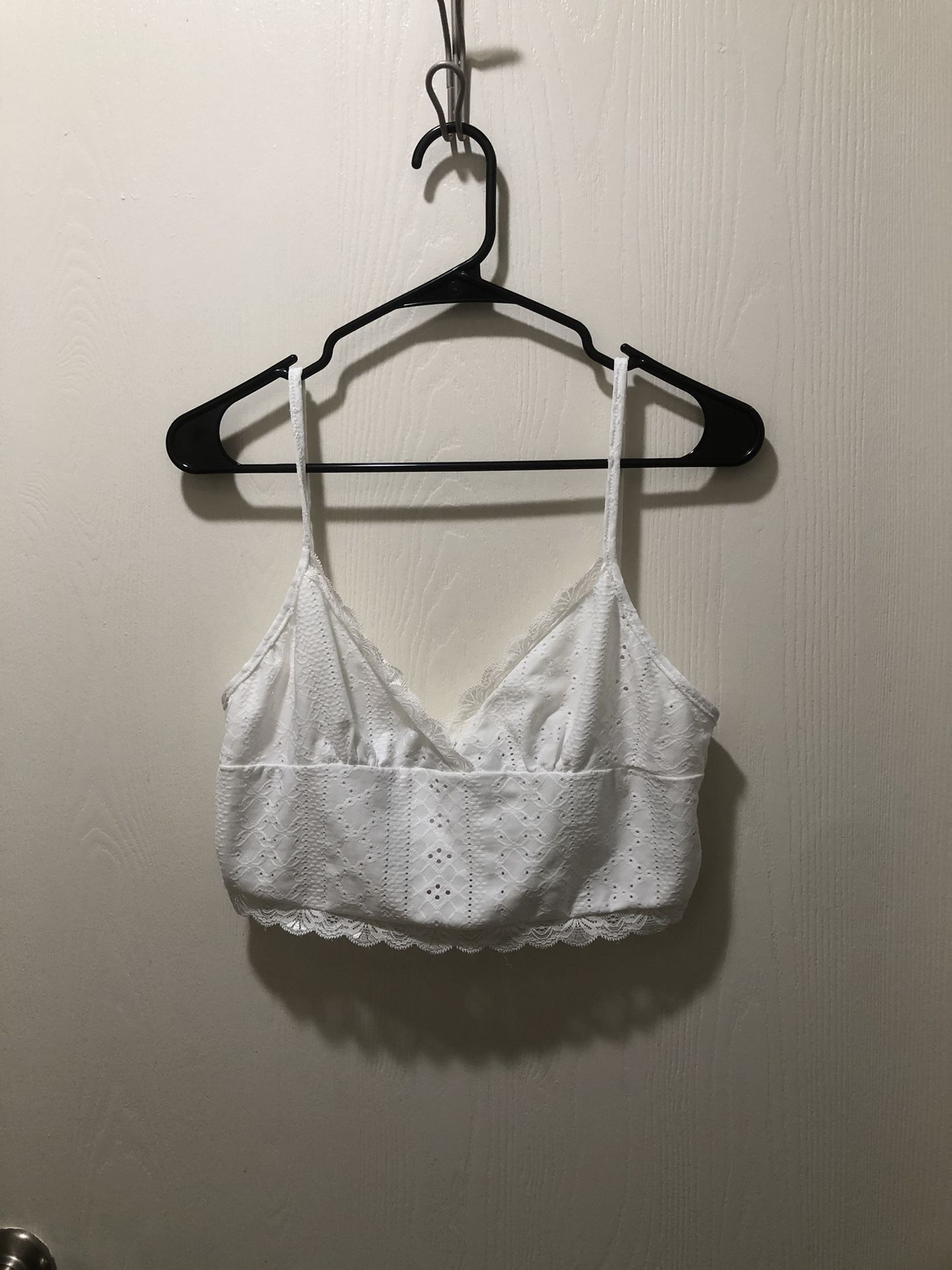 White crop top Size large US 8/10 Brand Shein Top White top Lace crop top Lace top Brand new without tags Lace trim crop top Shein spaghetti strap Bohemian style boho style hippie