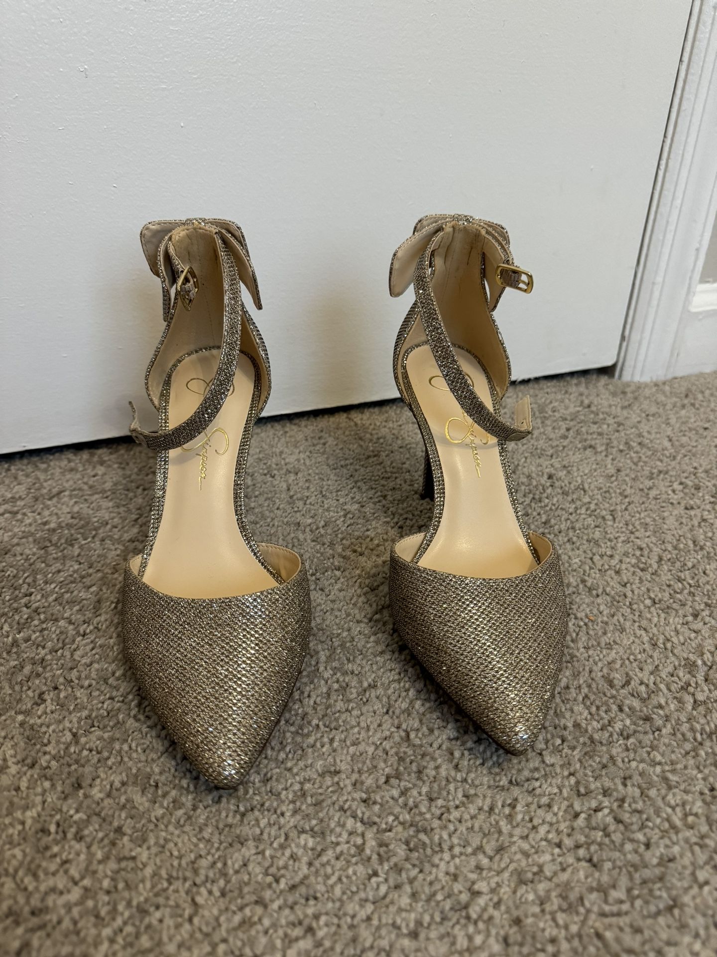Touched by rhinestones for a dash of stellar shine, the Whispie pump from Jessica Simpson proves a shining add to your wardrobe, while the stiletto heel lifts you higher. The padded footbed cushions your steps, for a bit of function to match the fashion. Clean, SmokeFreeHome Open To Offers ! You might be surprised! Fast Shipper ! Ask Questions?